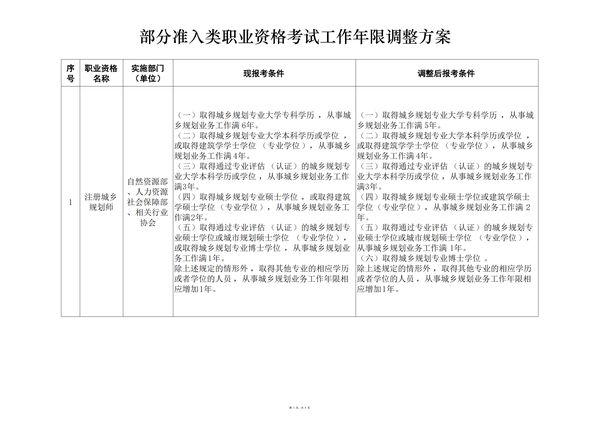 附件:部分準入類職業(yè)資格考試工作年限調整方案